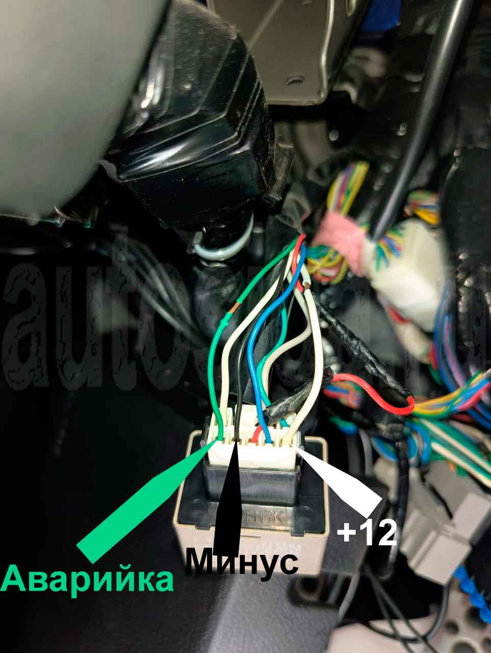 +12 – белый, масса – чёрный, аварийка (-) – зелёный