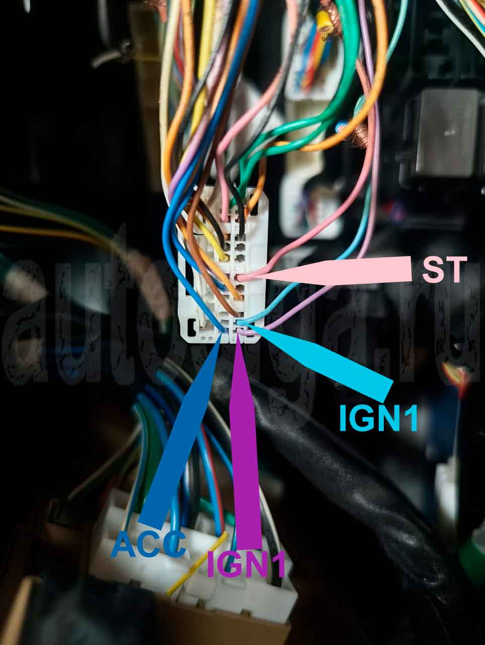 Can-H – белый, Can-L – голубой, acc (+) – синий, ign1 (+) – фиолетовый в верхнем разъёме