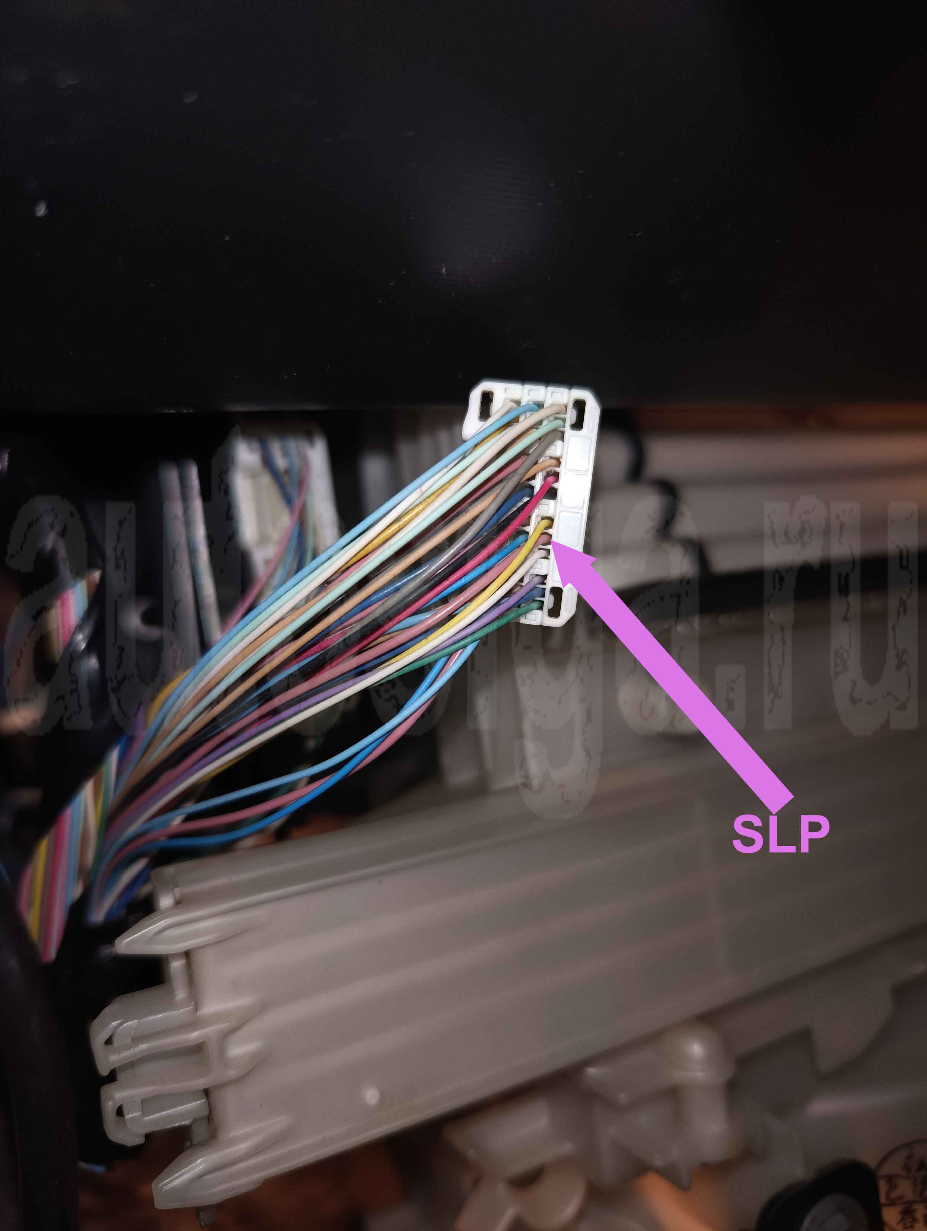 В верхнем разъёме блока сертификации за бардачком слева подключаемся к slp.